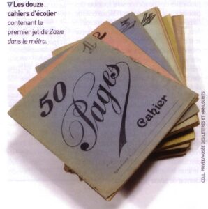 Le premier jet du manuscrit de Zazie dans le métro de Raymond Queneau a été écrit dans douze cahiers d’écolier.
